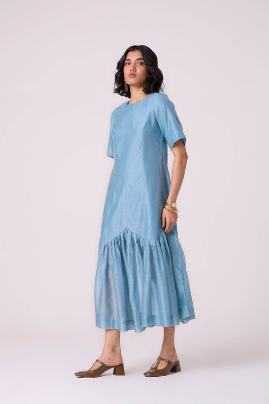 Milena Blue Handwoven Panelled Dress