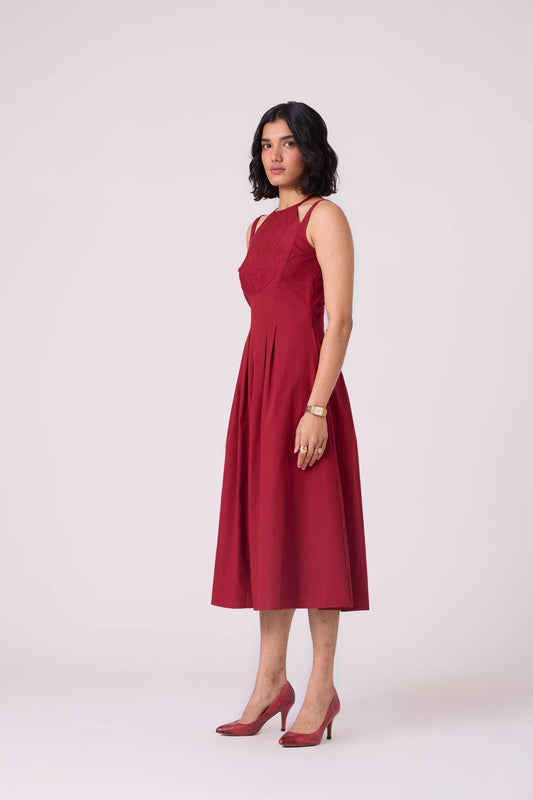 Ellaria Red Midi Embroidered Dess
