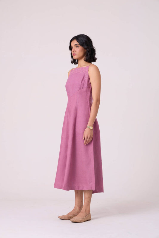 Ai Pink Embroidered Handwoven Dress