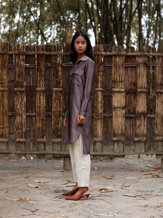 Mṛjā Collective chose Ura Maku for its unique blend of cultural reverence and commitment to sustainable fashion. Founded by Manjushree Saikia, who hails from the upper valleys of Assam, Ura Maku embodies her deep connection to Assamese textiles and folk cultures. After graduating from the National Institute of Fashion Technology (NIFT) and traveling across India’s craft clusters, Saikia was inspired by the artisans’ skills and values, which reinforced her dedication to mindful design. Ura Maku, meaning "to fly" and "shuttle" in Assamese, symbolises the brand's fusion of timeless, tailored clothing with handwoven, handcrafted textiles. Their focus on simplicity, shape, texture, and proportion creates a stylish, future-forward apparel line that honours cultural heritage while embracing sustainable practices. This alignment with Mṛjā Collective’s ethos of thoughtful, enduring fashion made Ura Maku a perfect fit for our curated collection.