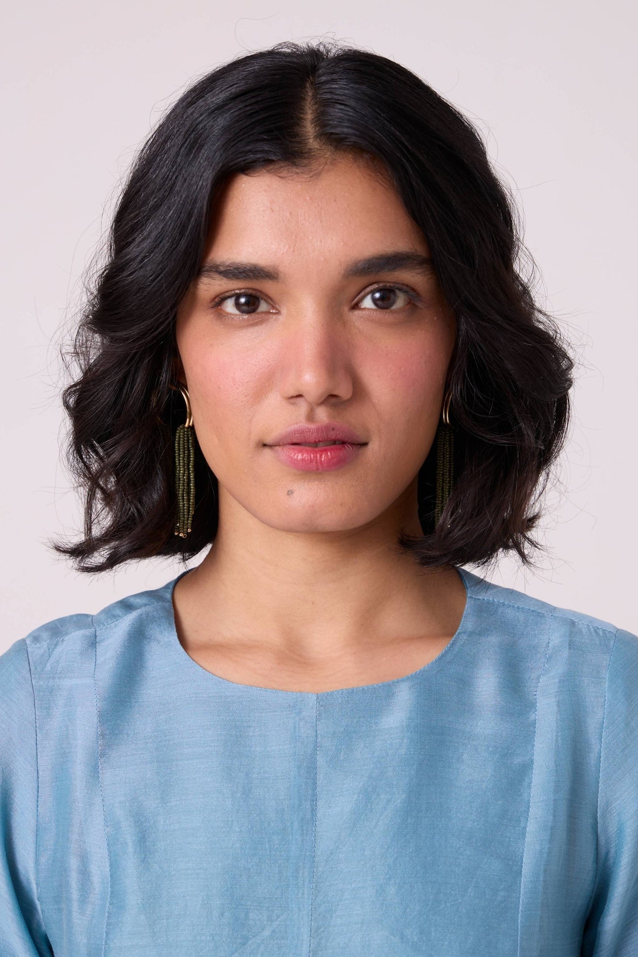 A maxi dress that holds shape through a panelled bodice before falling into a sheer drop-waist hem. Set-in sleeves add clarity to the line, making the silhouette grounded yet softly expressive.