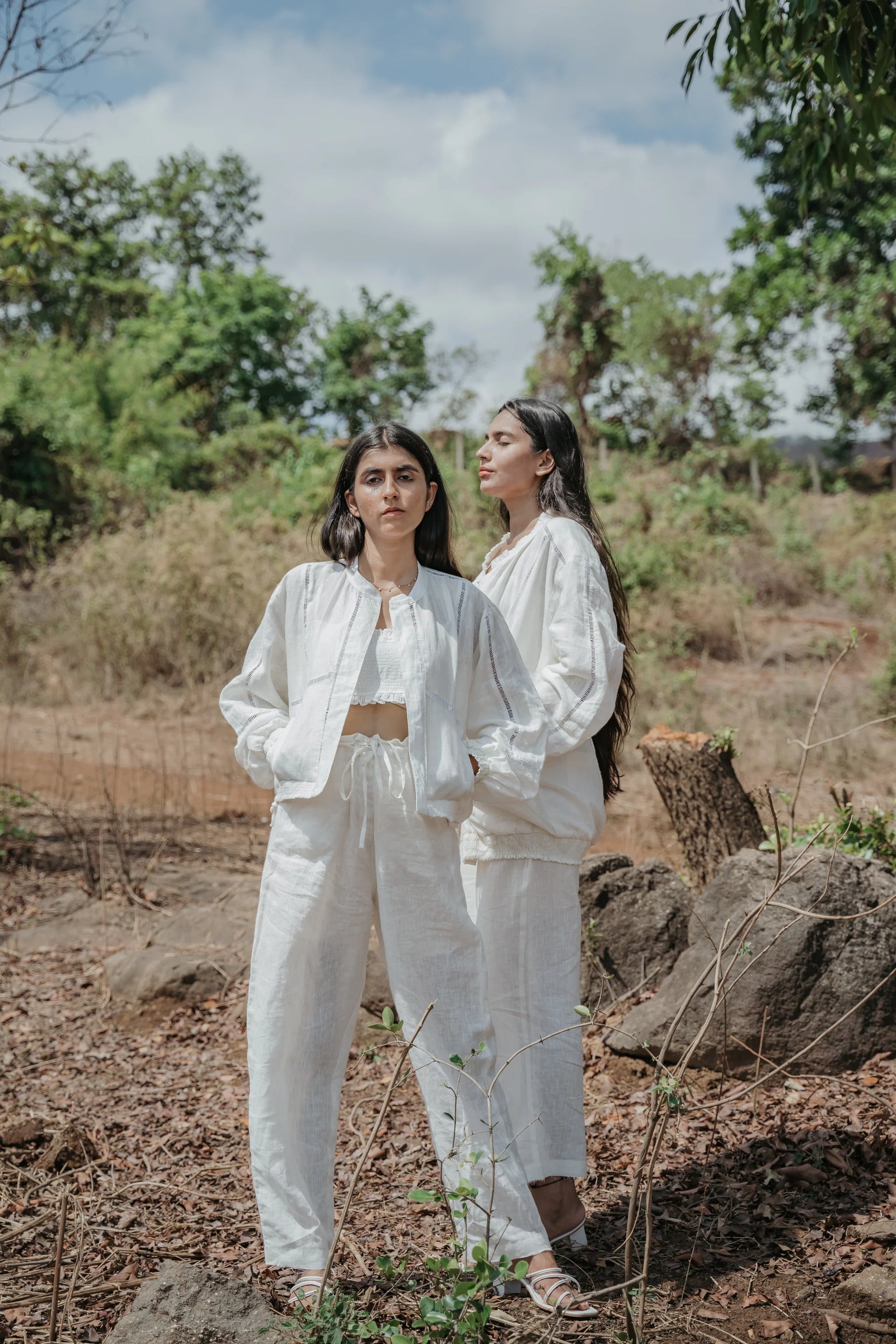 - Crafted with attention to detail, this long white bomber lace jacket showcases intricate woven panels, adding sophistication to its classic style.
