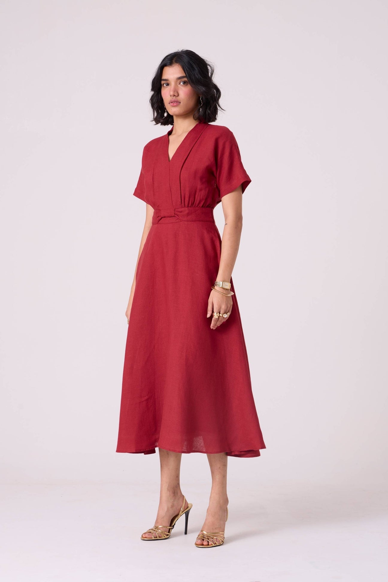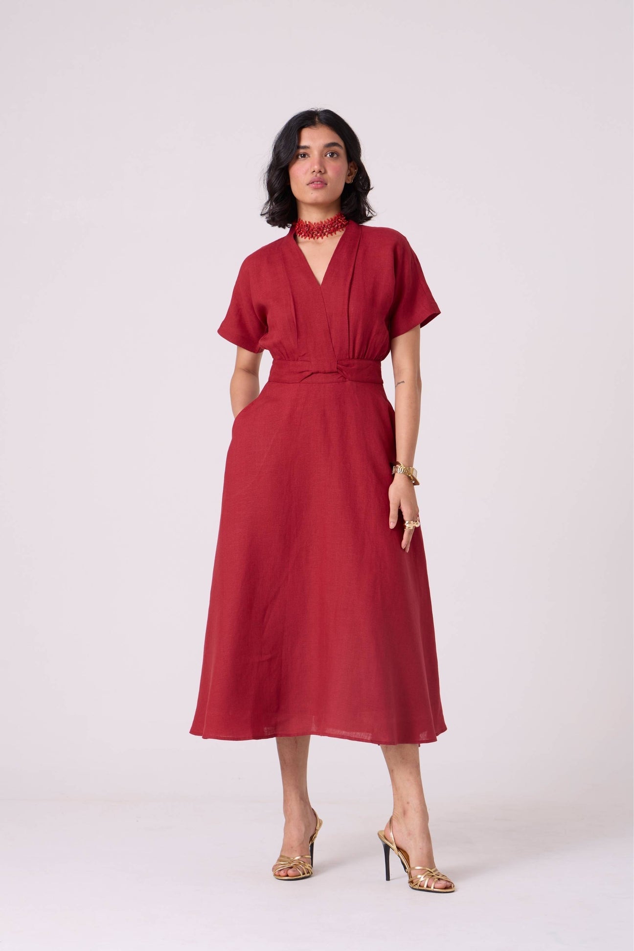 - Classic red midi dress