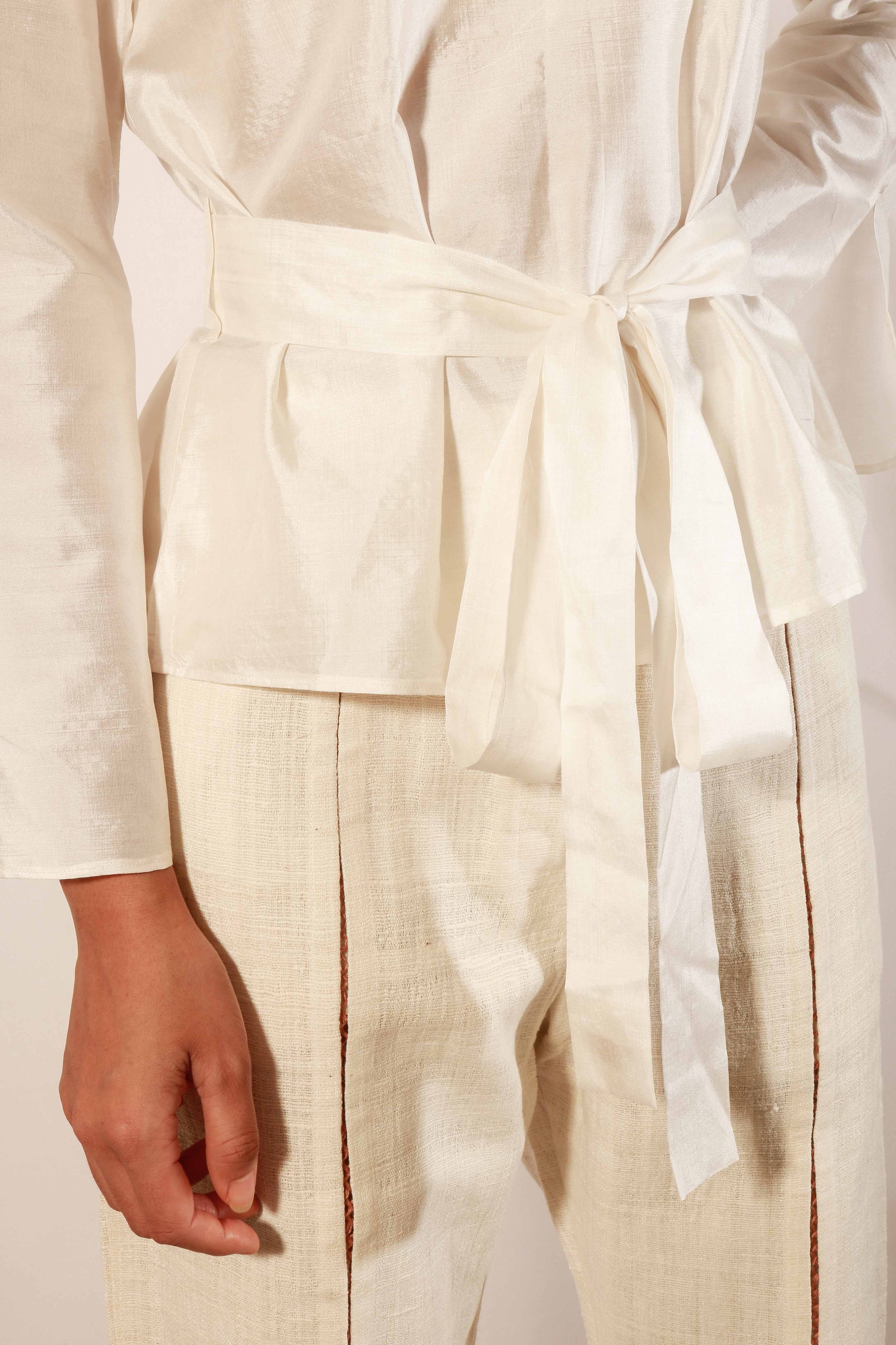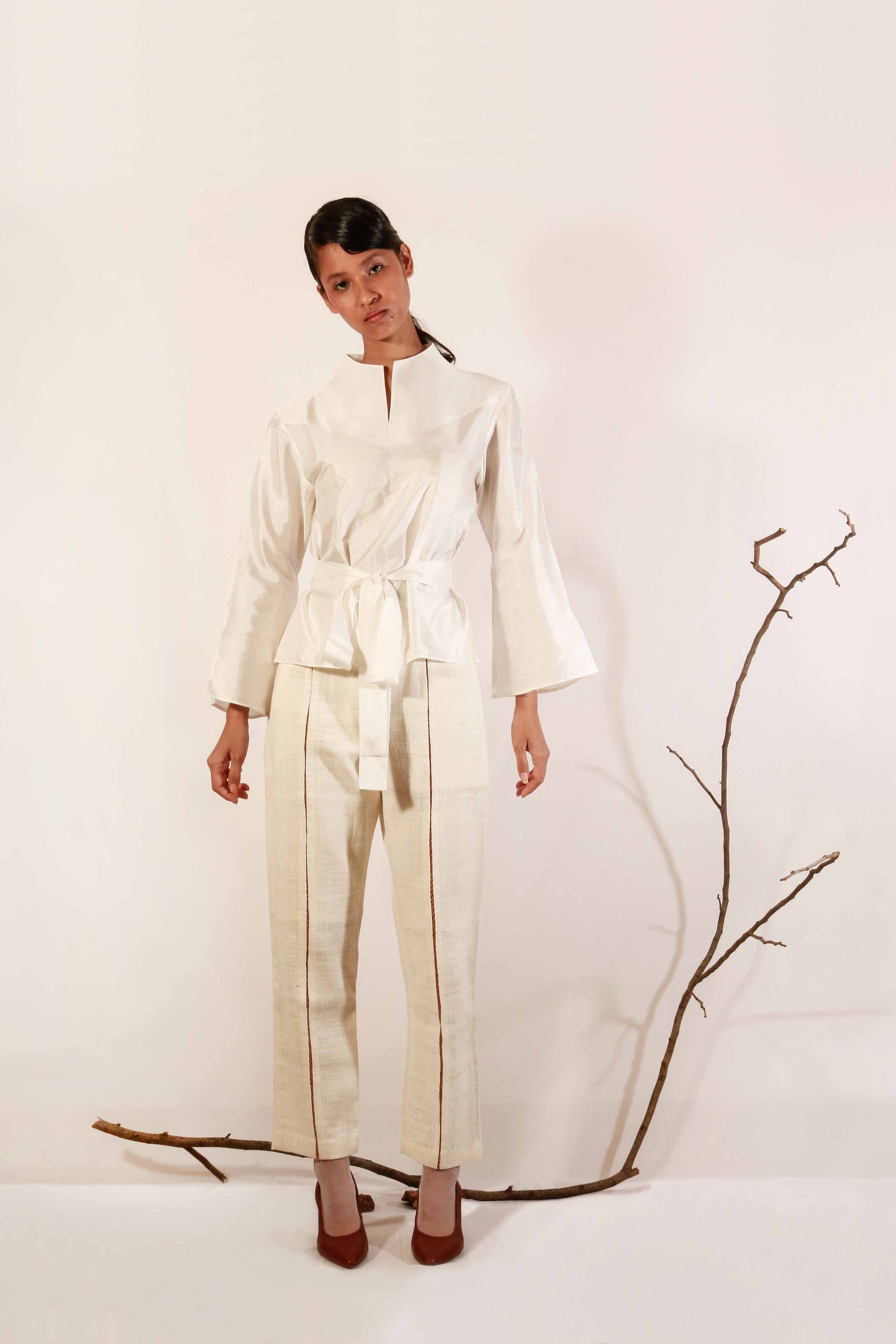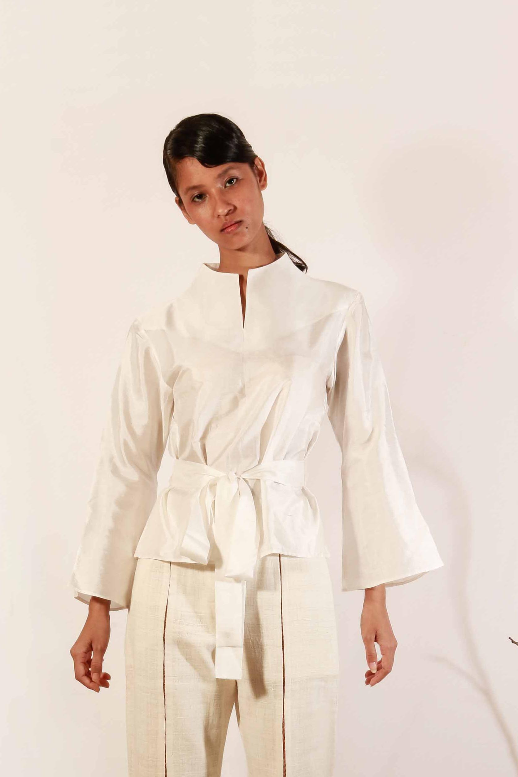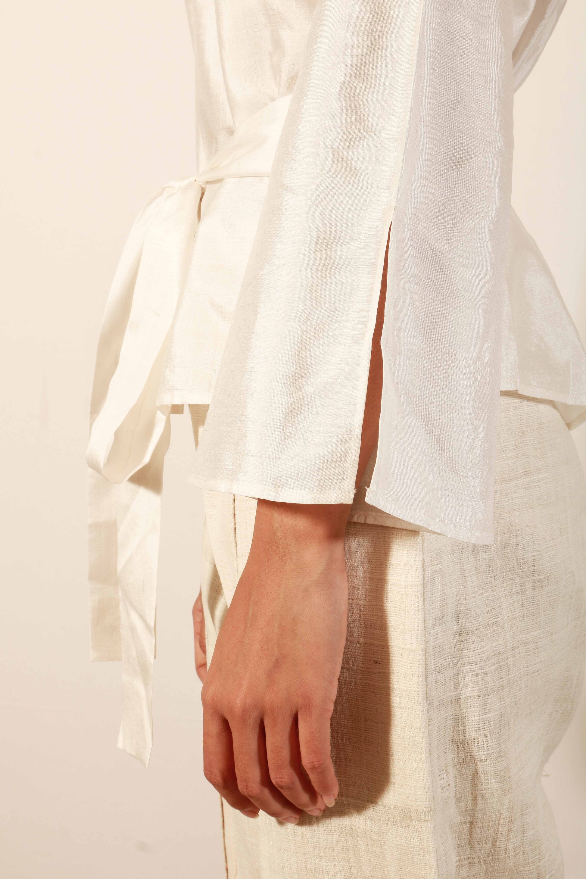 Discover the timeless charm of our Mulberry Silk High-Neck Top, crafted from luxuriously soft and lustrous mulberry silk. This exquisite piece features a graceful high-neck design that exudes sophistication, while the flared full sleeves add a touch of fluid elegance. The rich texture and natural sheen of mulberry silk enhance the silhouette, making it a versatile choice for both formal and casual occasions. Designed for effortless drape and comfort, this top seamlessly blends classic refinement with contemporary style.